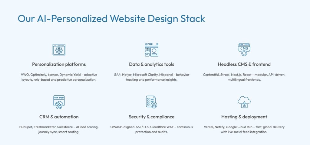 At Markiverse, we go beyond outdated brochureware and CMS-driven websites to deliver intelligent web-based digital experiences based on who’s visiting, what they’re seeking and why they’ll return. Our AI-powered web personalization services use AI and data-driven insights to build websites that think, learn, and adapt – just like your business does.